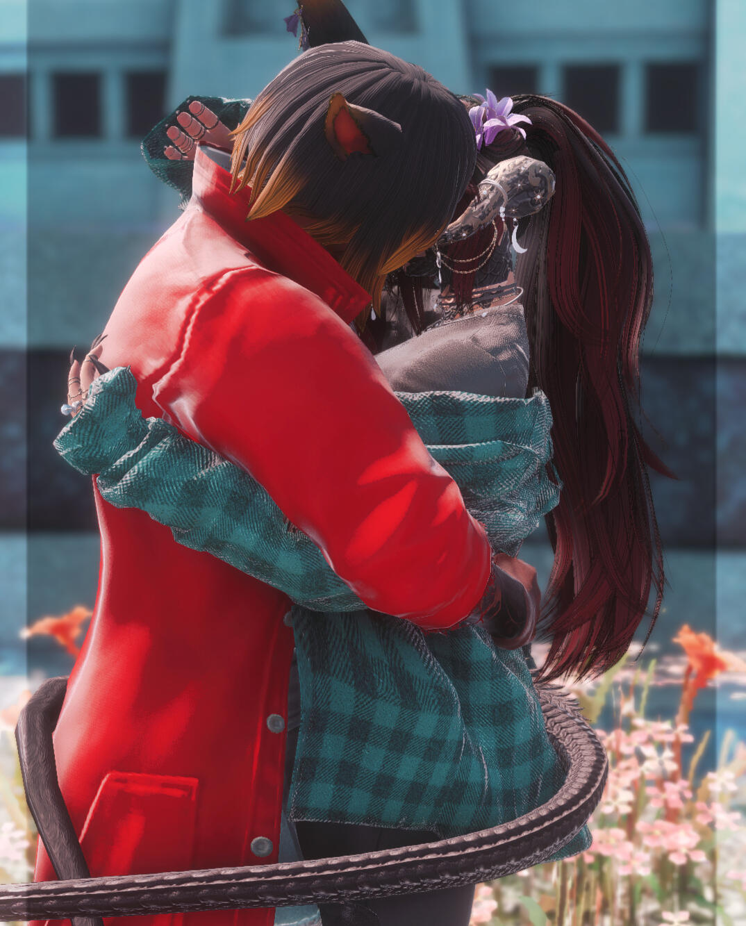 Her Dragon | Her Ishgardian. One of Kenji's longest standing partners before she met her current husband and someone she trusts entirely. He is like feeling the fresh snow crunching under your boot first thing on a cold morning, bundled up in a warm coat with a cup of coffee to sip to her. He is comfort. He is Home.One could swear these two were married when they are in a room together and she is within arms reach of him, the way she softens when she looks at him and he takes her attention off the room.