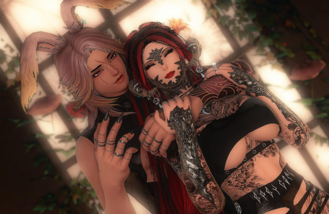 Her Muse | Her Serenity. She wouldn't be able to tell you when she didn't feel as if Thaura was the Yin to her Yang, the pair truly being seemingly two pieces of the same puzzle, and someone she feels as if she cannot be without. The Duskwight grounds her, helps her work through her thoughts as they get ready together, and she would do anything to hear her laugh with the little snort she does.They truly are two peas in a pod and she looks at the Elezen like she is her world sometimes. With how soft and in love she appears when she looks up at her. They move in tandem, truly like every interaction is a dance, she often feels like they share thoughts when they answer along the same vein almost at the same time. She is her Muse and she continues to find Thaura to be a beautiful source of her creative processes.